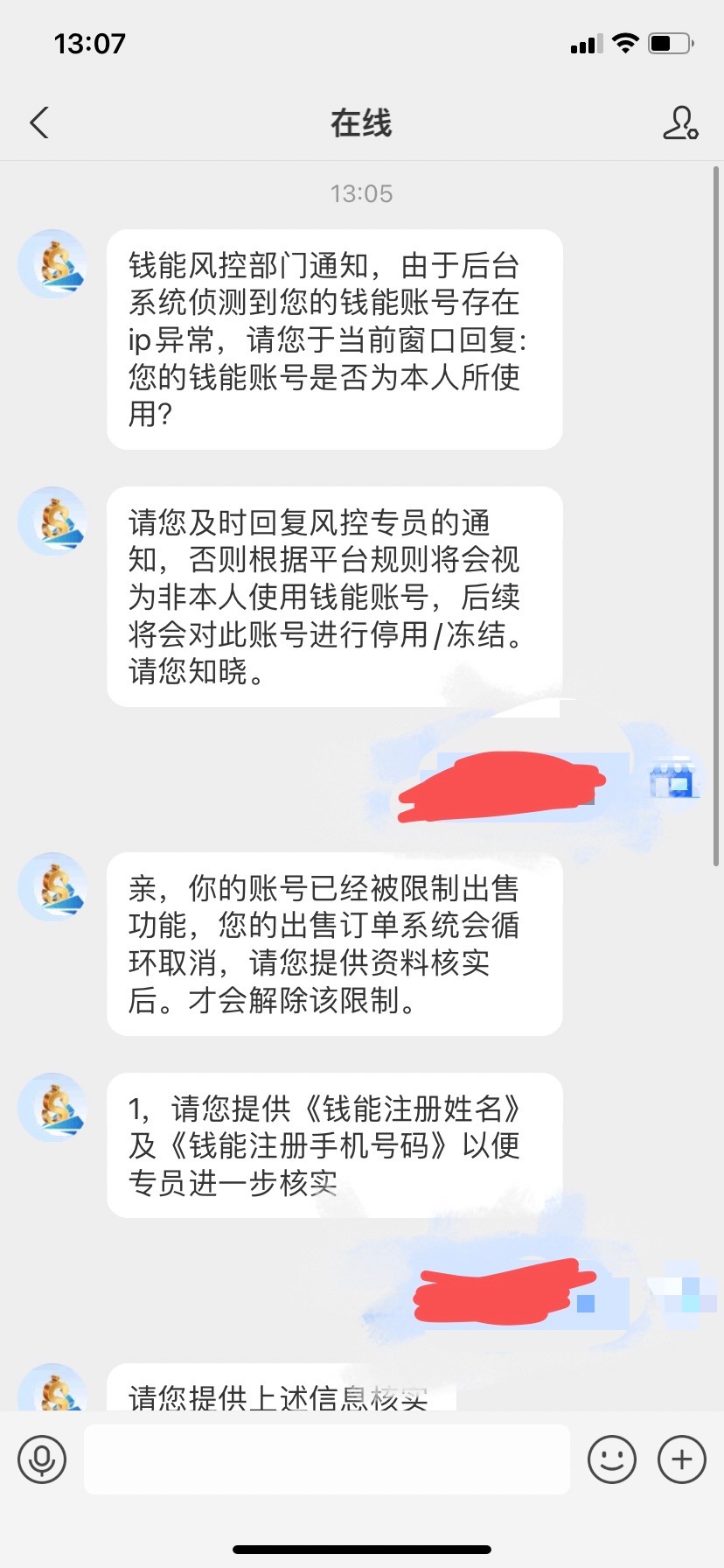 兄弟们注意了,现在骗子真的是出其不意攻其不备的,在你卖币的时候,他会进行抢单然后支付0.1给你,完事就取消订单,冒充钱能客服找到你,老骗取你的资料来盗号,最后被我发现恼羞成怒