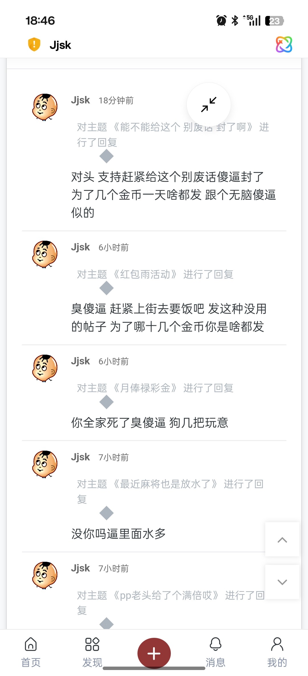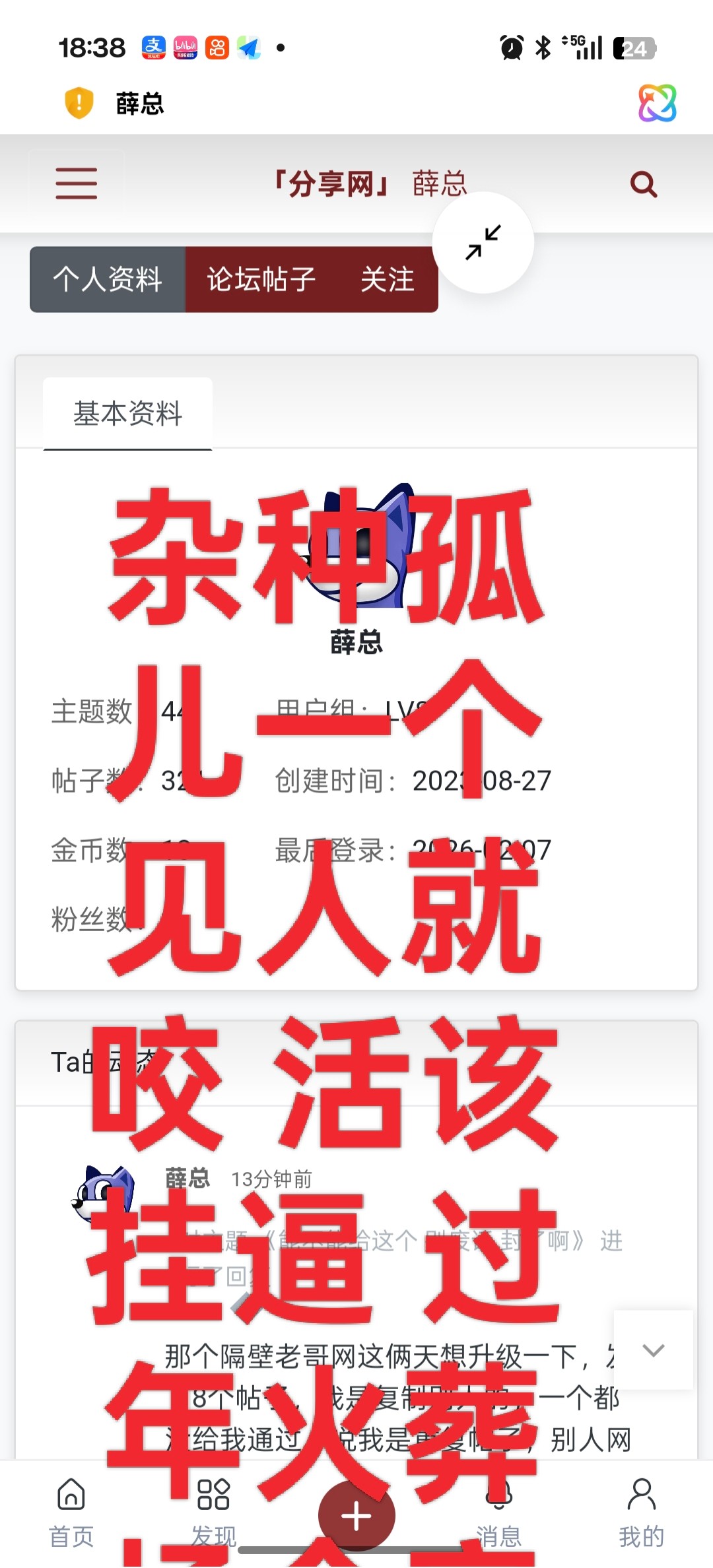 凌晨18厘米 老子发一下这个关你屁事啊 操你妈