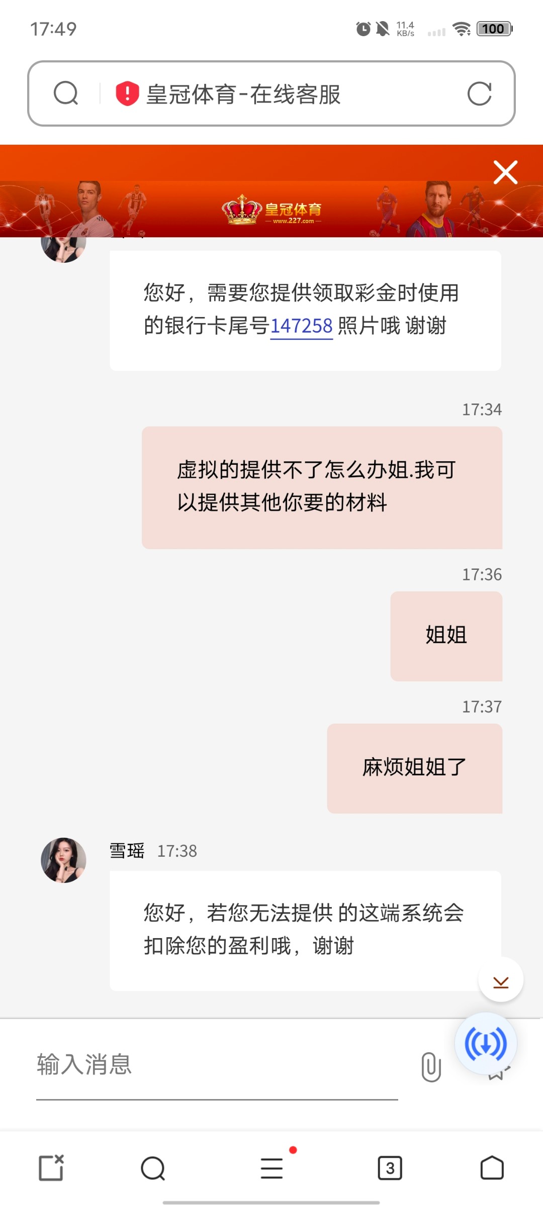 皇冠那傻逼客服一直不回