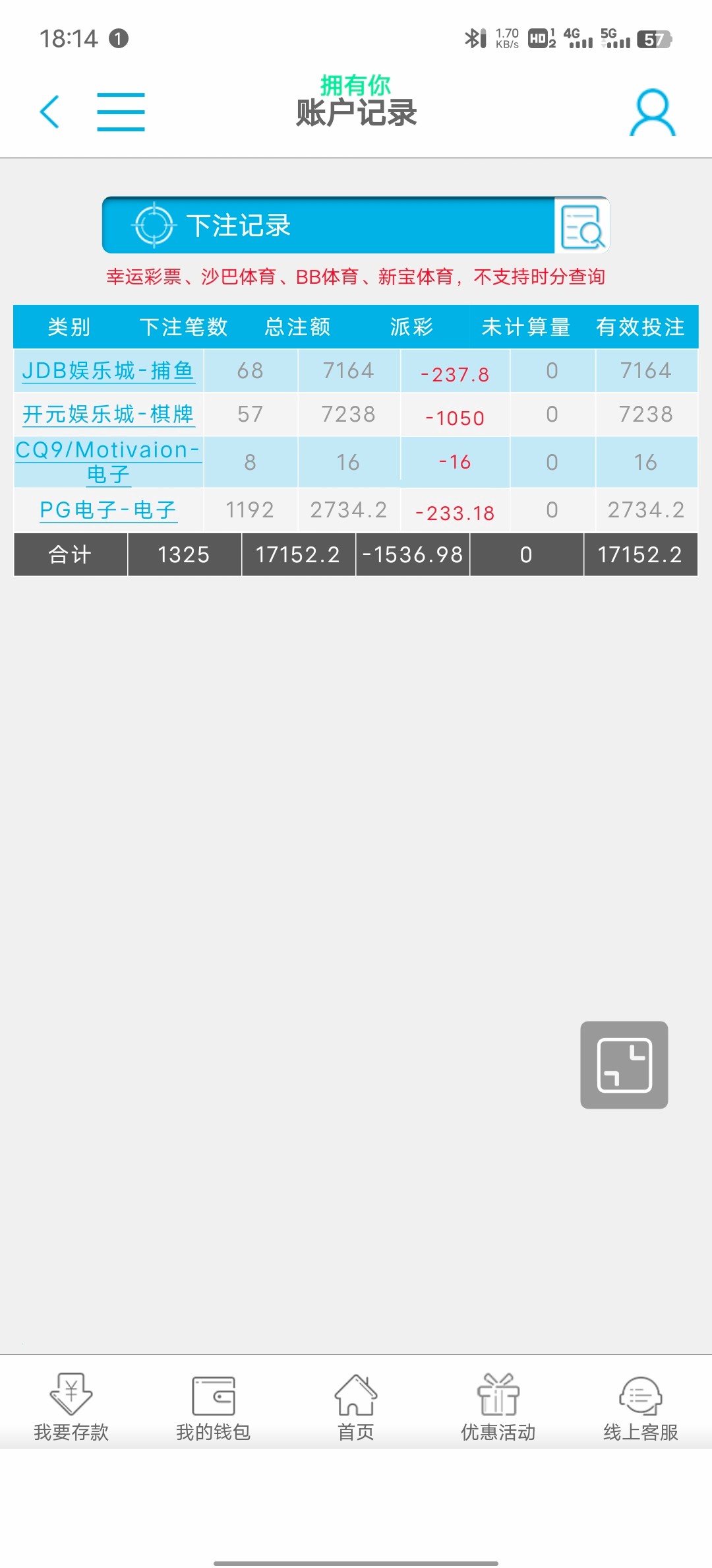 这周输了2300 上个月也是 6500 输到最后1000 赢回来了 不敢玩了 还有5000现金