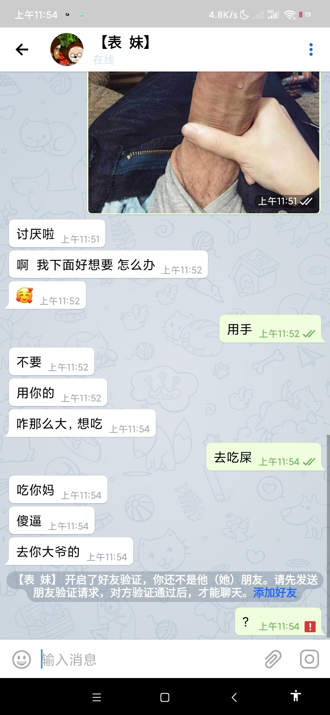 天选艹蛋蛋: 妈的要短信截图    给他做了一张    艹路人狗日的