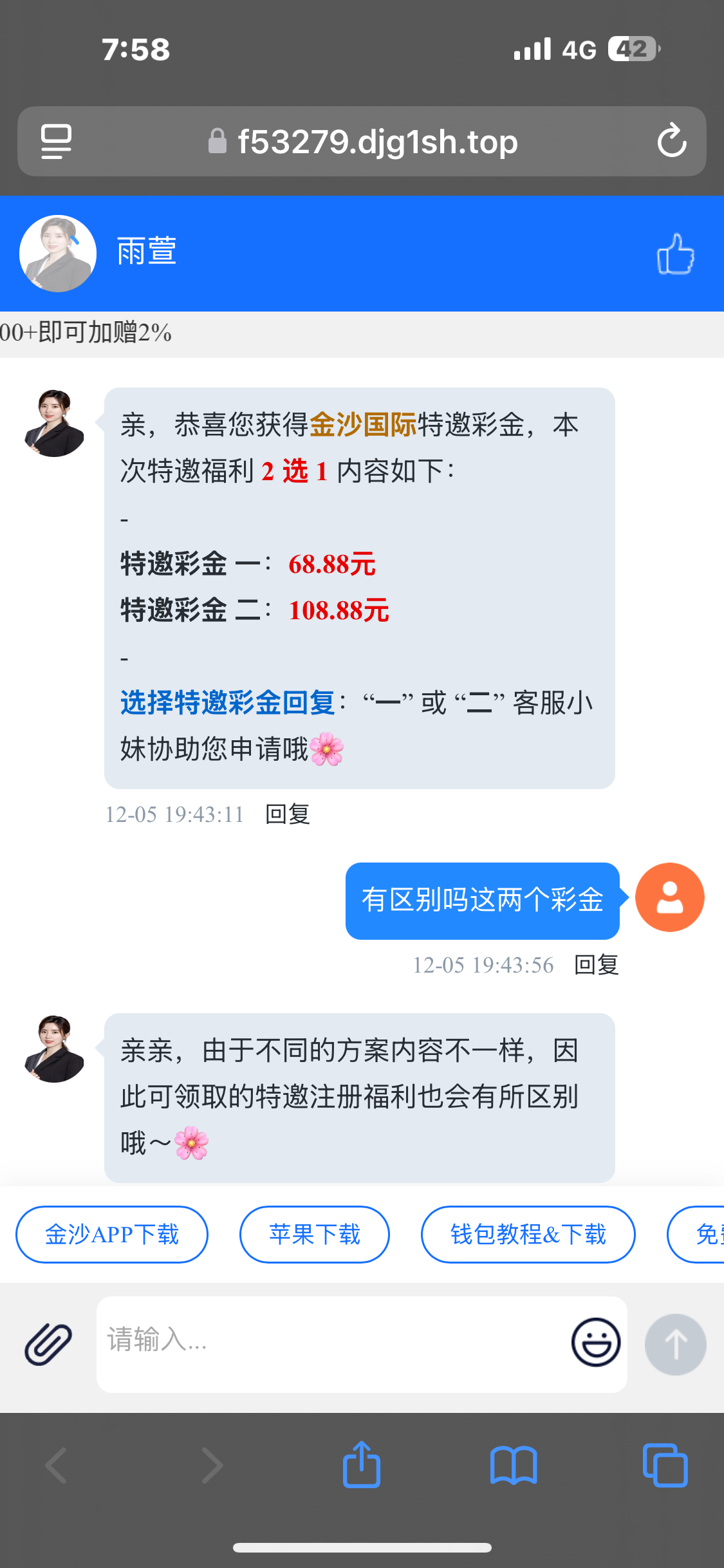 这种东西就不要发上来了,搞半天客服一句要截图要手机号,就算碰瓷也给个微信特邀的图片吧,你就好比说我告诉你买双色球可以中500W,但是号码你自己去选一样,真不知道你发出来要浪费大家多少时间!!!最重要的,给的链接还是推广链接,你把大家当SB玩呢