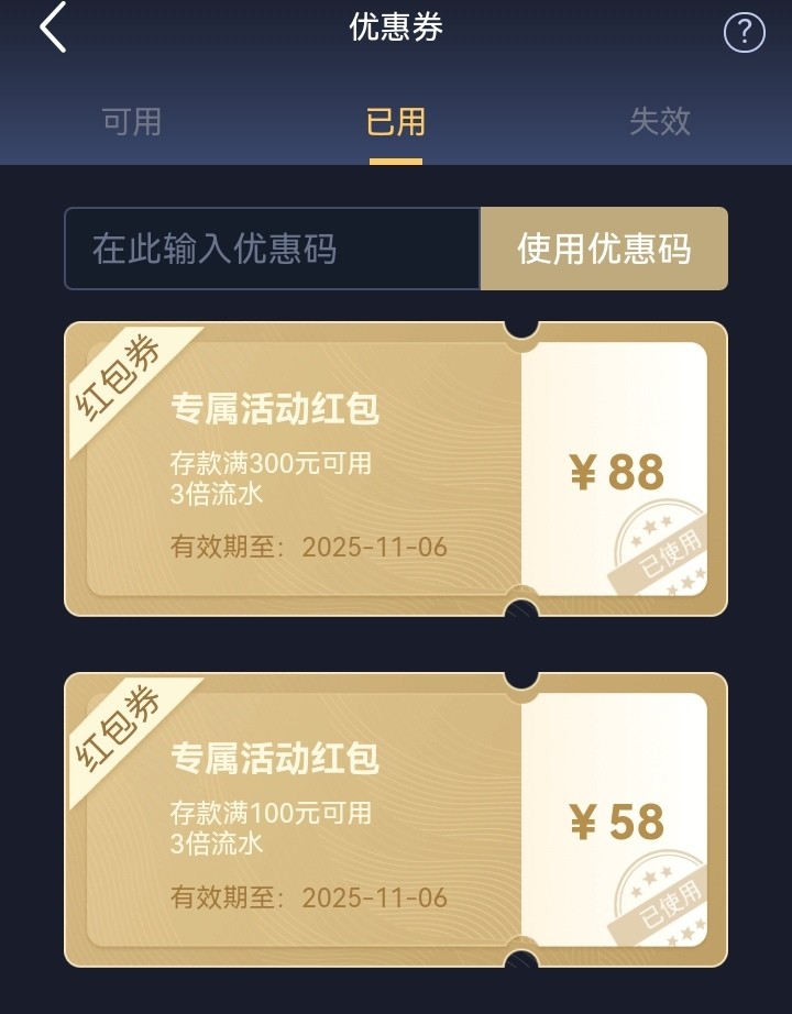 v0送了两个优惠券。