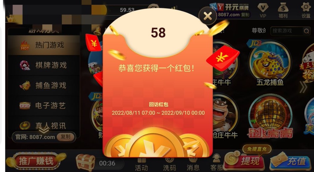 老用户登入自动弹出红包回馈58-1888