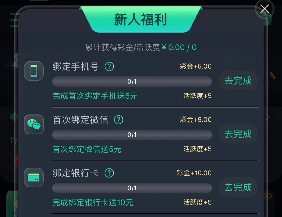 完成新人任务领20彩金,提现要求自己去问客服