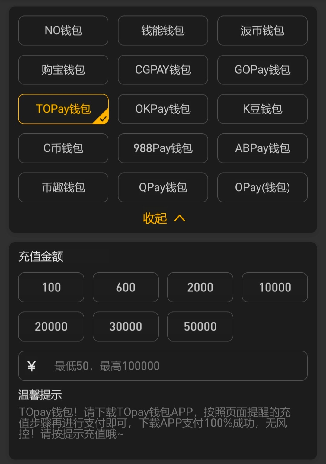 最低充值50起