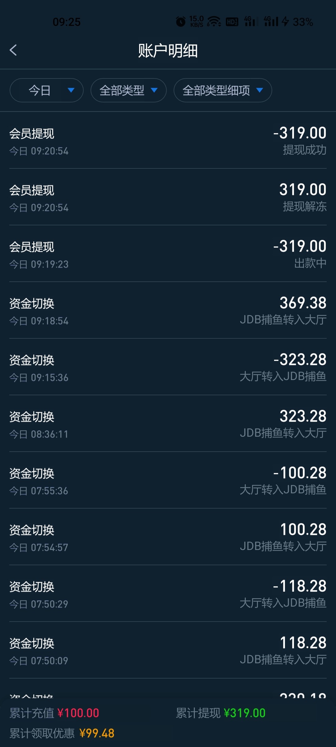 存钱包100,奖励58+18+1+1出319
