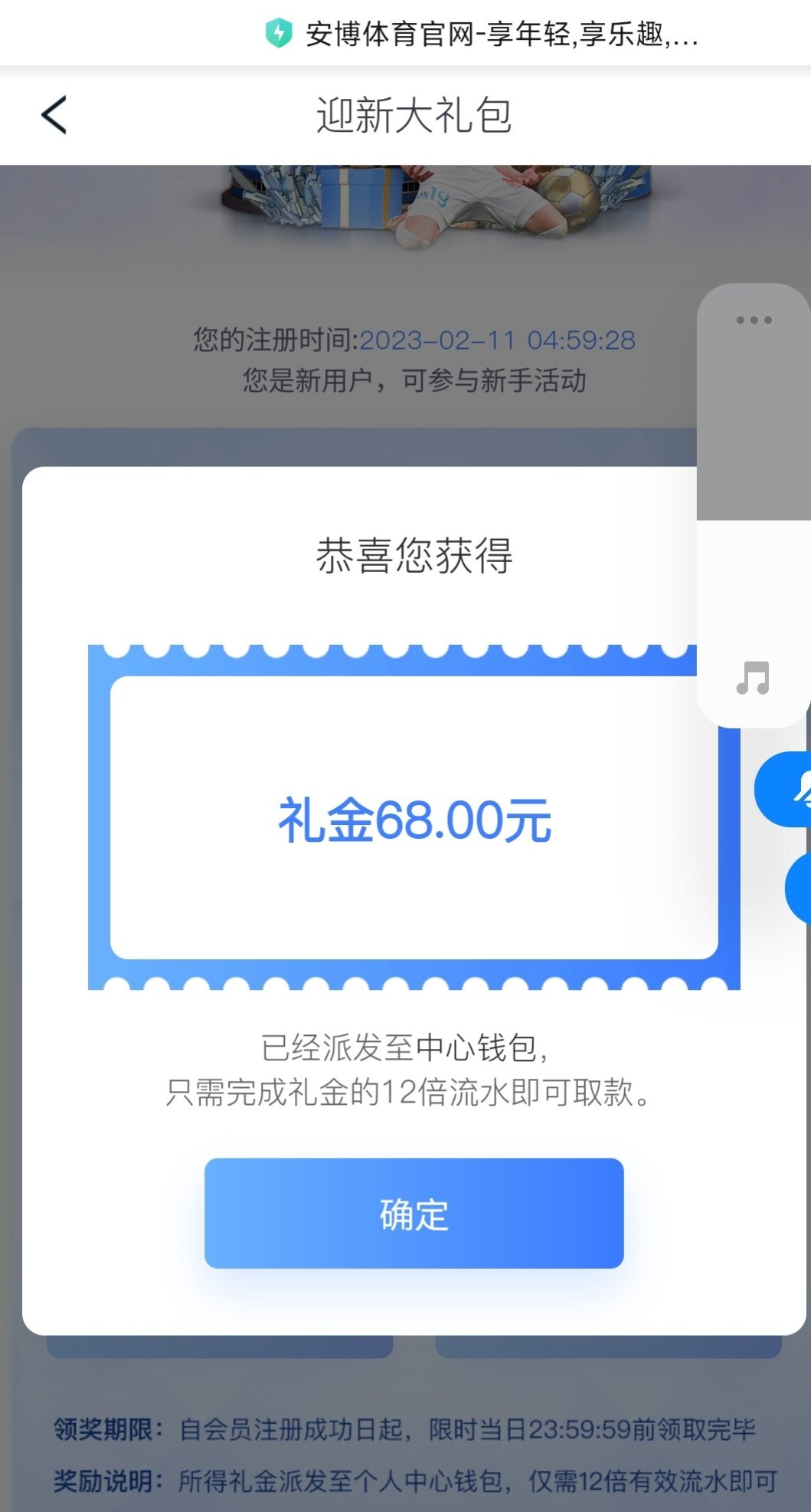 新用户注册优惠里面新人活动绑定手机号绑卡秒领18彩金/100提现具体自测,切记勿充值。