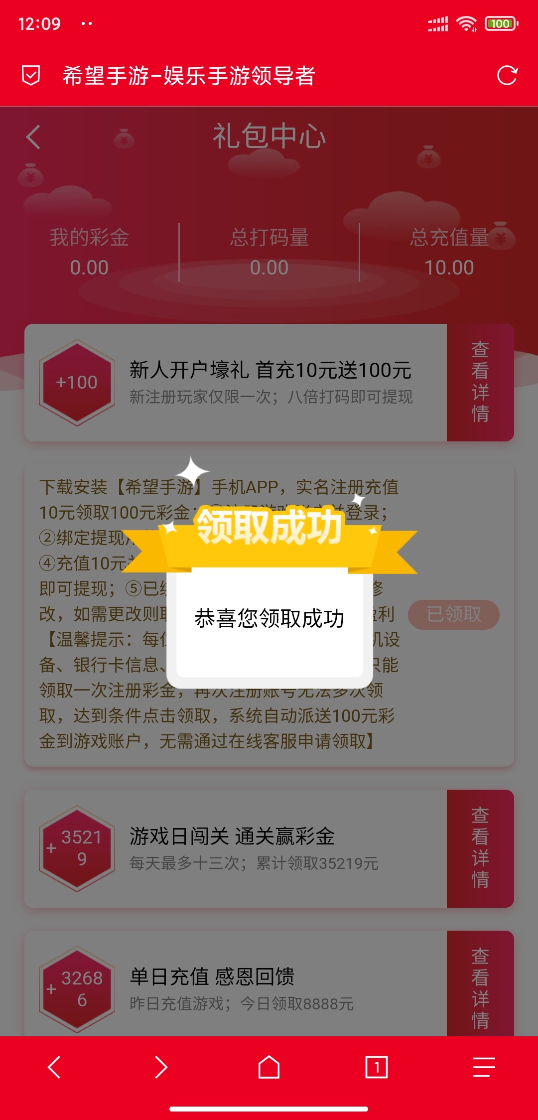手游系列下载注册完善资料首存10送100,礼包中心里面秒领,最低500提。也有黑的自己掂量,别到时候又唧唧歪歪。领不到就换一下IP就可以领了只要不是同名。活动随时下架。