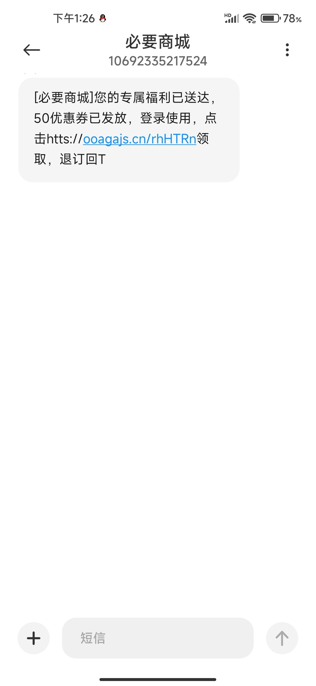 [必要商城]您的专属福利已送达,50优惠券已发放,登录使用,点击htts://ooagajs.cn/rhHTRn领取,退订回T