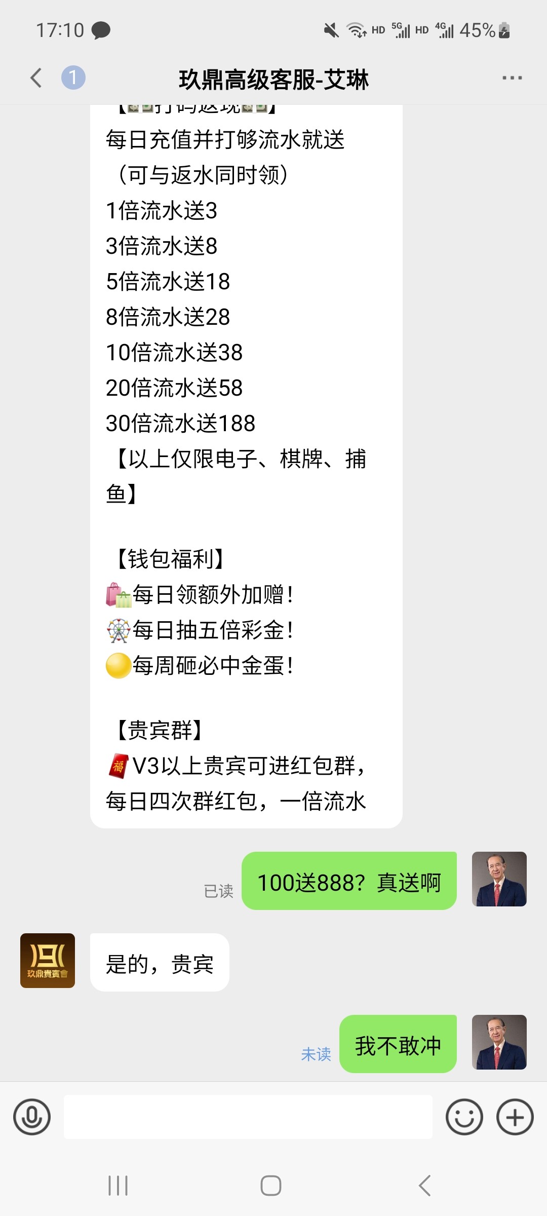 你傻逼? 别人前两天100送888 30倍流水出款 傻逼