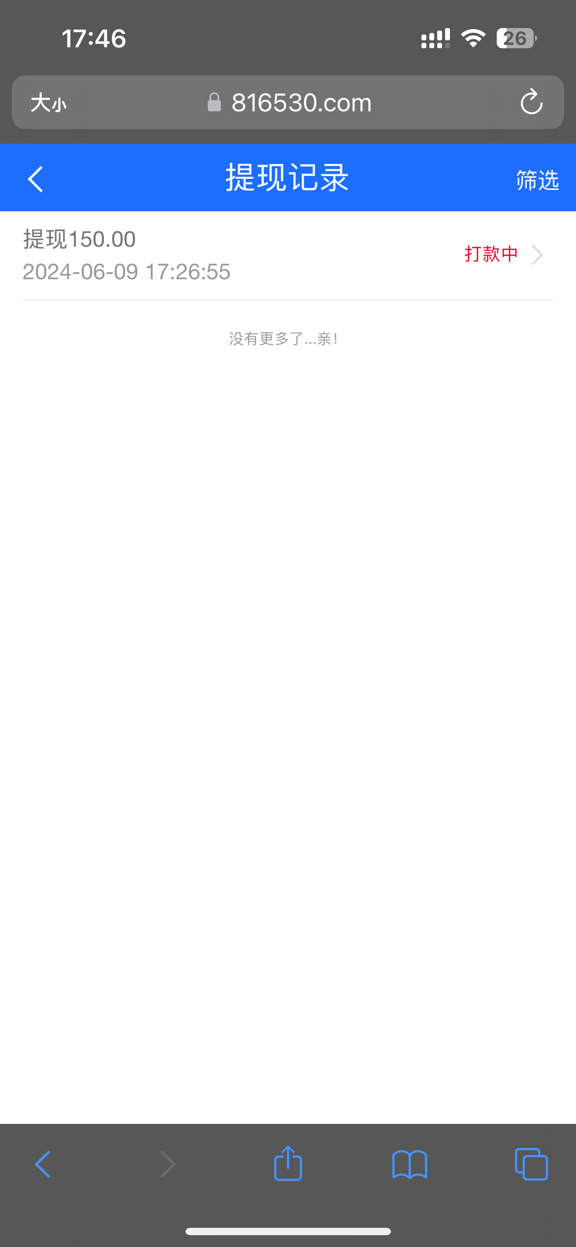啊北 2个半小时到账