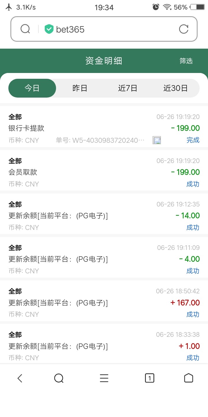 打到200 提了199到账