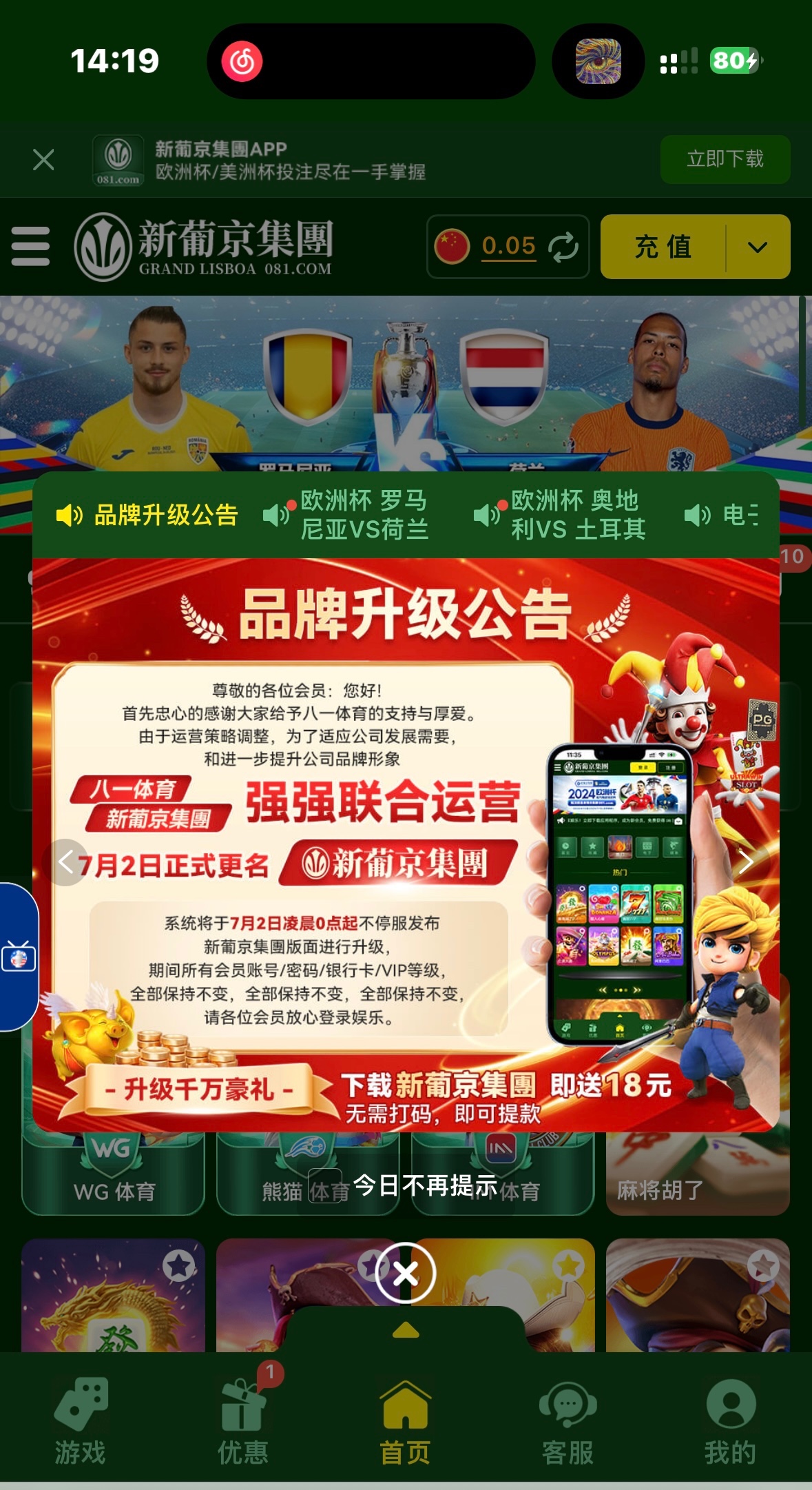 之前是八一体育,现在升级成新葡京了,有帐号的也有送,新账号也送,提现验证了