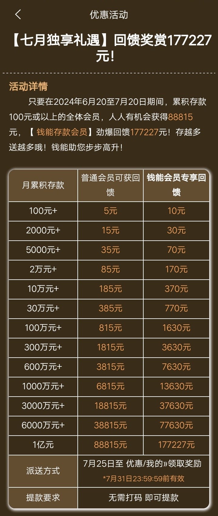 钱能系列平台一个月充值回馈出来了
