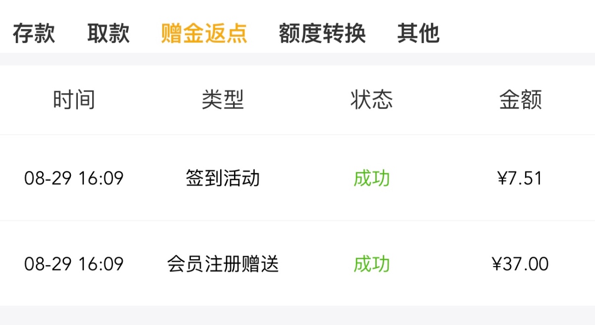 送了77签到送7,84打到1000+,刷完流水710,充值50打到900提款成功。