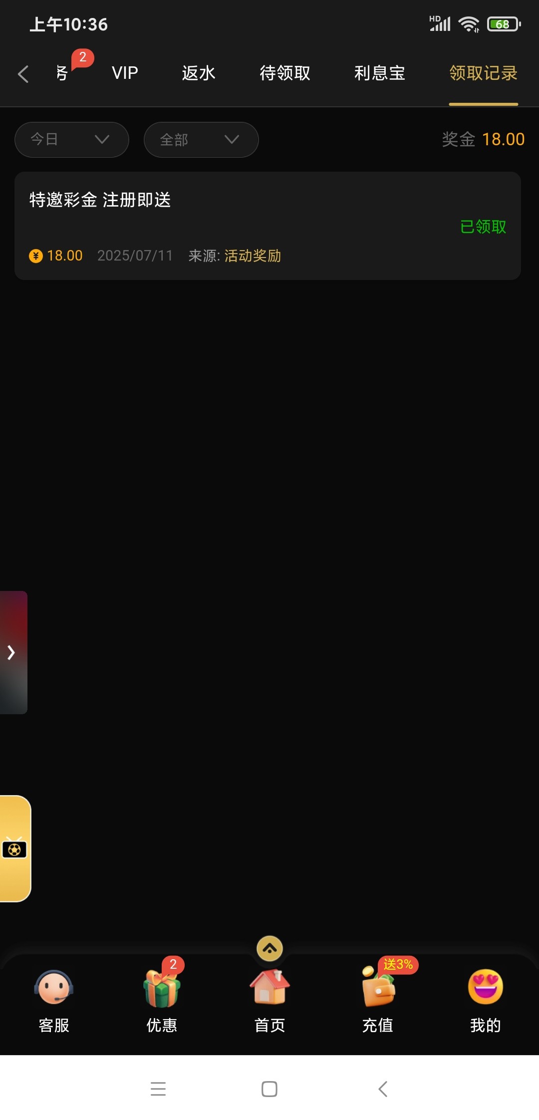 优惠里自助秒38彩金 自测吧