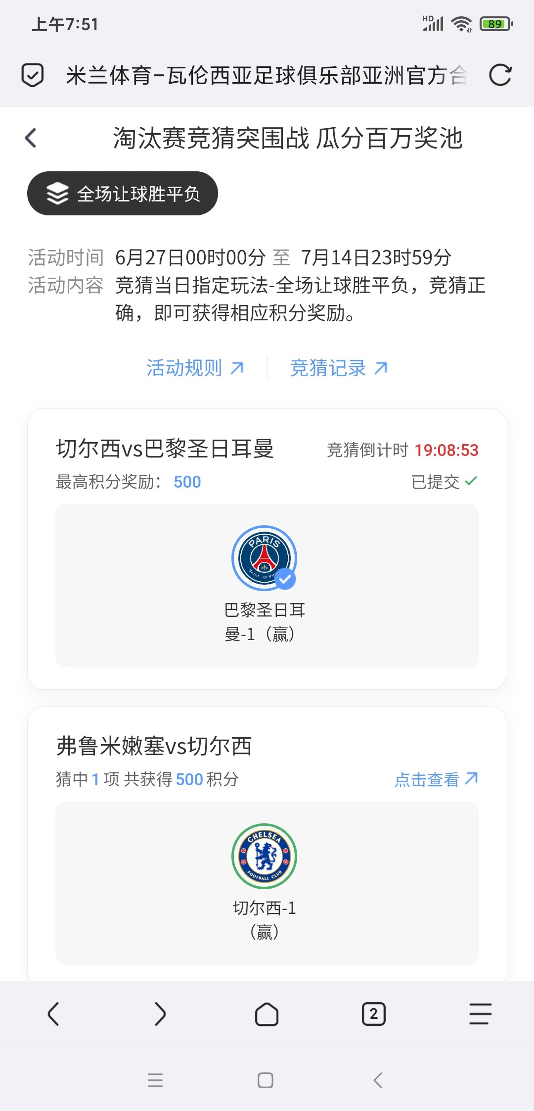决赛猜冠军拿积分,不是A就是B,不一样的台子对压一个总能中。14号踢完了决赛48小时内结算100:1自动兑换成彩金发到福利中心。