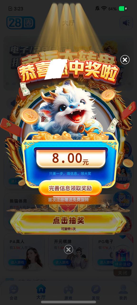 【28圈】—✅— 新用户转盘彩