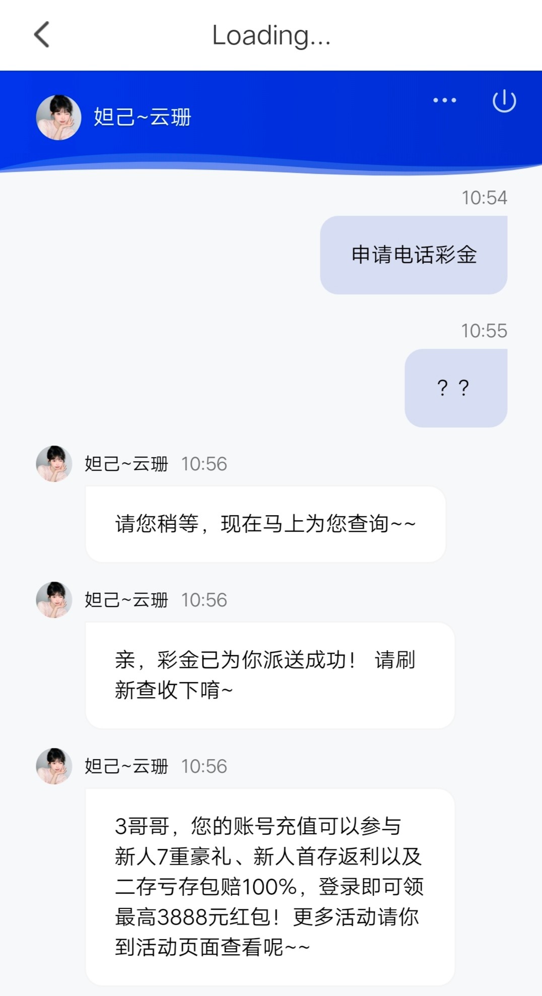接到电话送了彩金,不知道能不能碰瓷,可以去试试,通话截图放下面,碰不到无视就好,仅限白嫖,禁止充值。