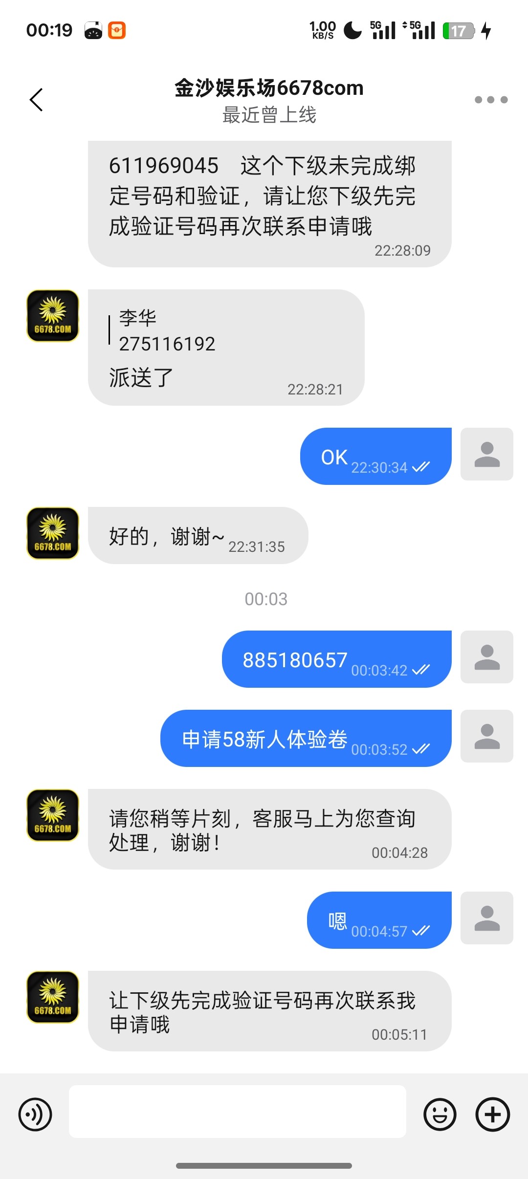 送了,给你机会你不中用啊,兄弟,你都给我发两个号了,你这都不绑一下手机号