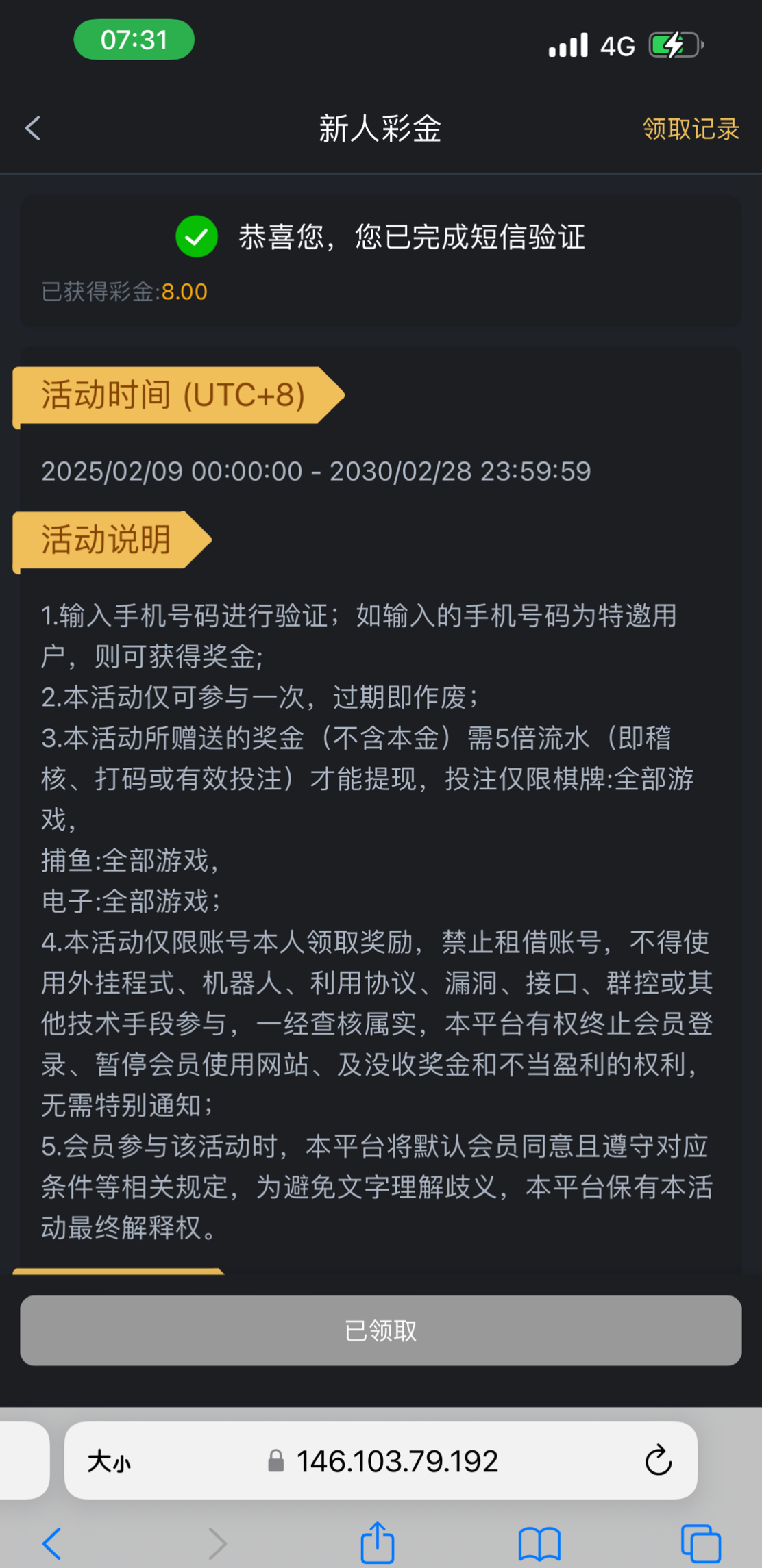 威尼斯人系列送8彩金,除了第三个都可以领到8,链接712.com