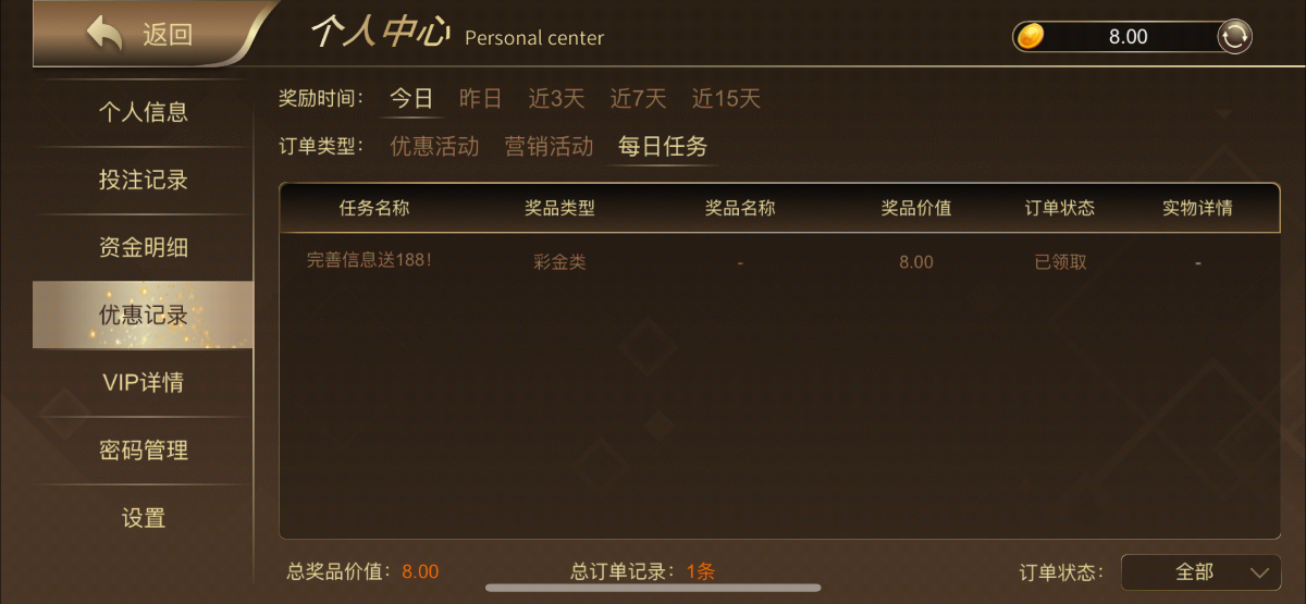 注册完善信息优惠任务领取