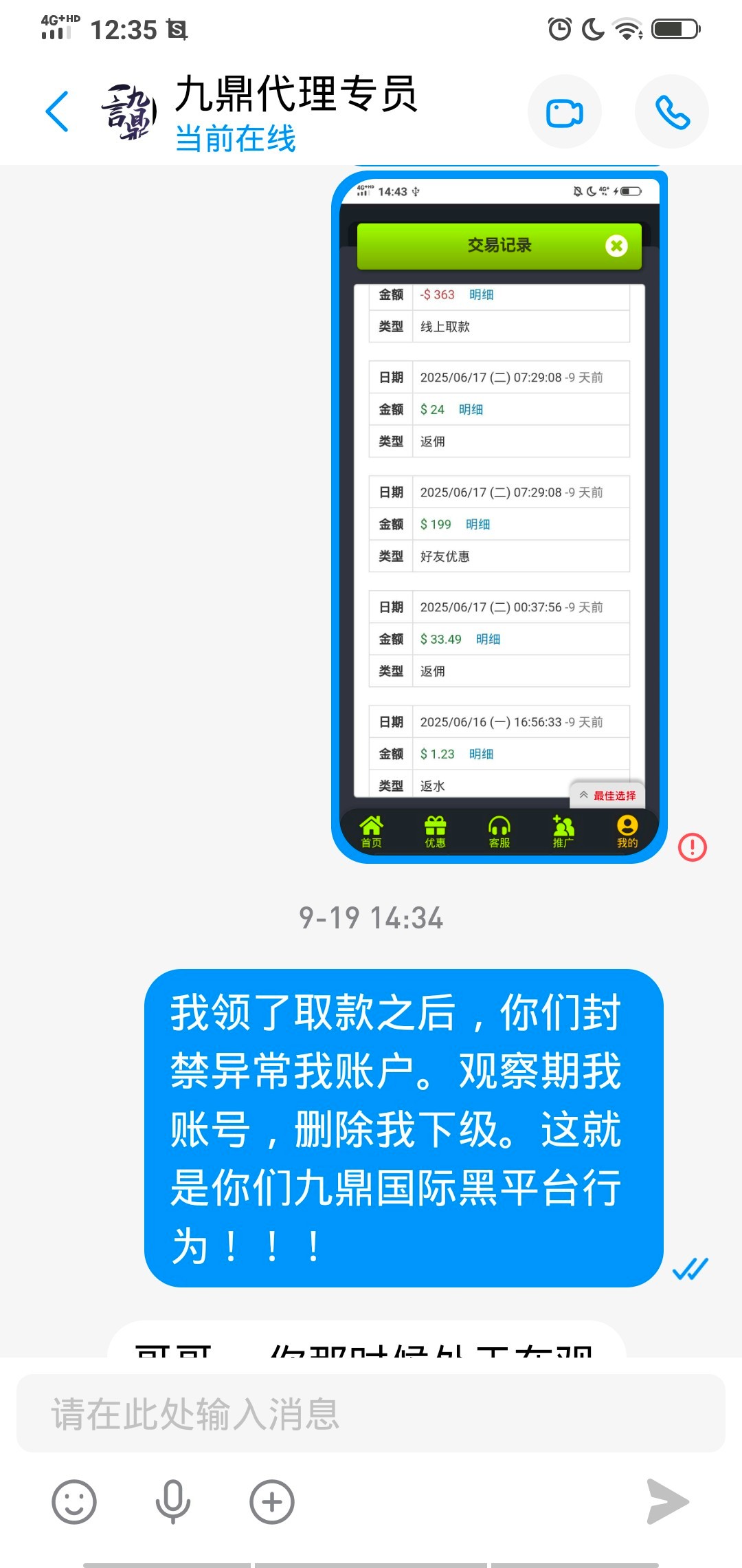 九鼎国际故意删除下级账号
