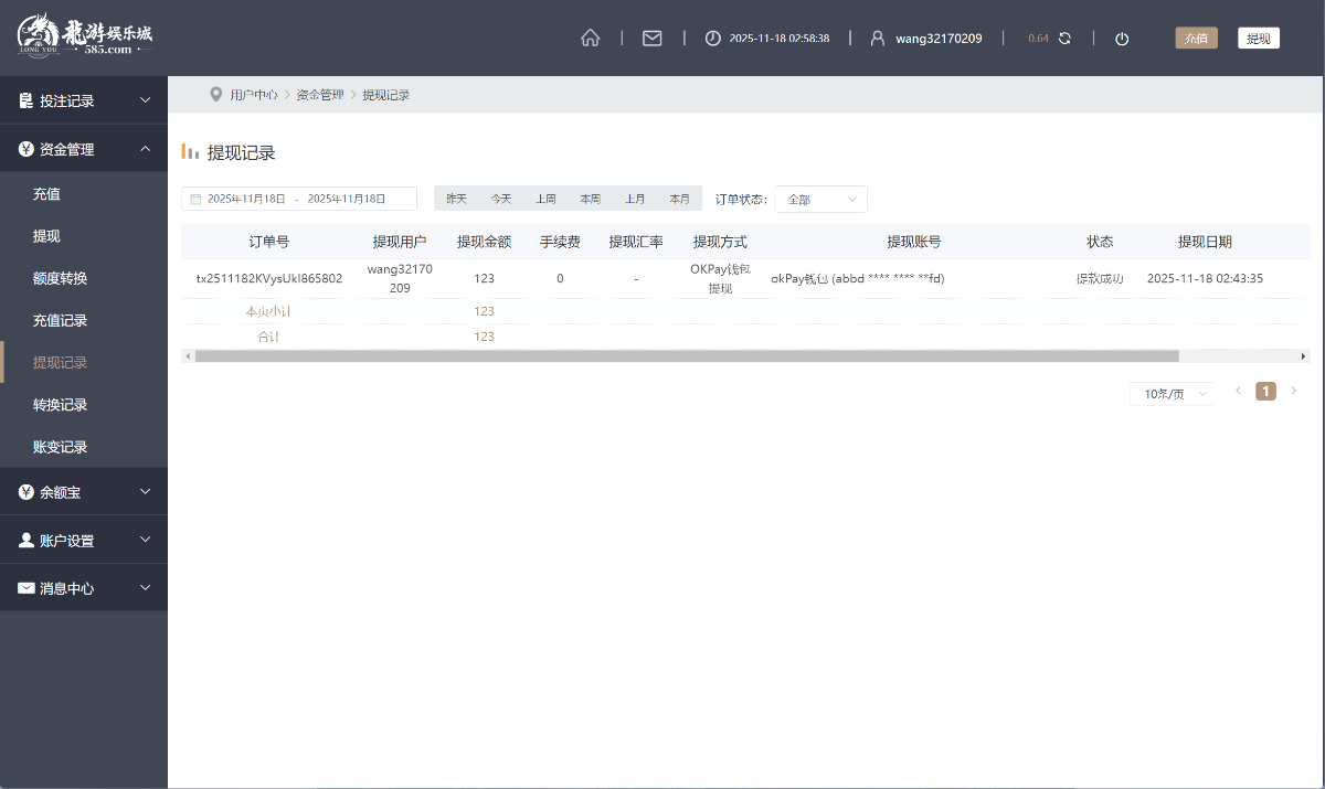充10块,提123,已到账,我想那些没到款的应该多少自己有点多账号操作吧