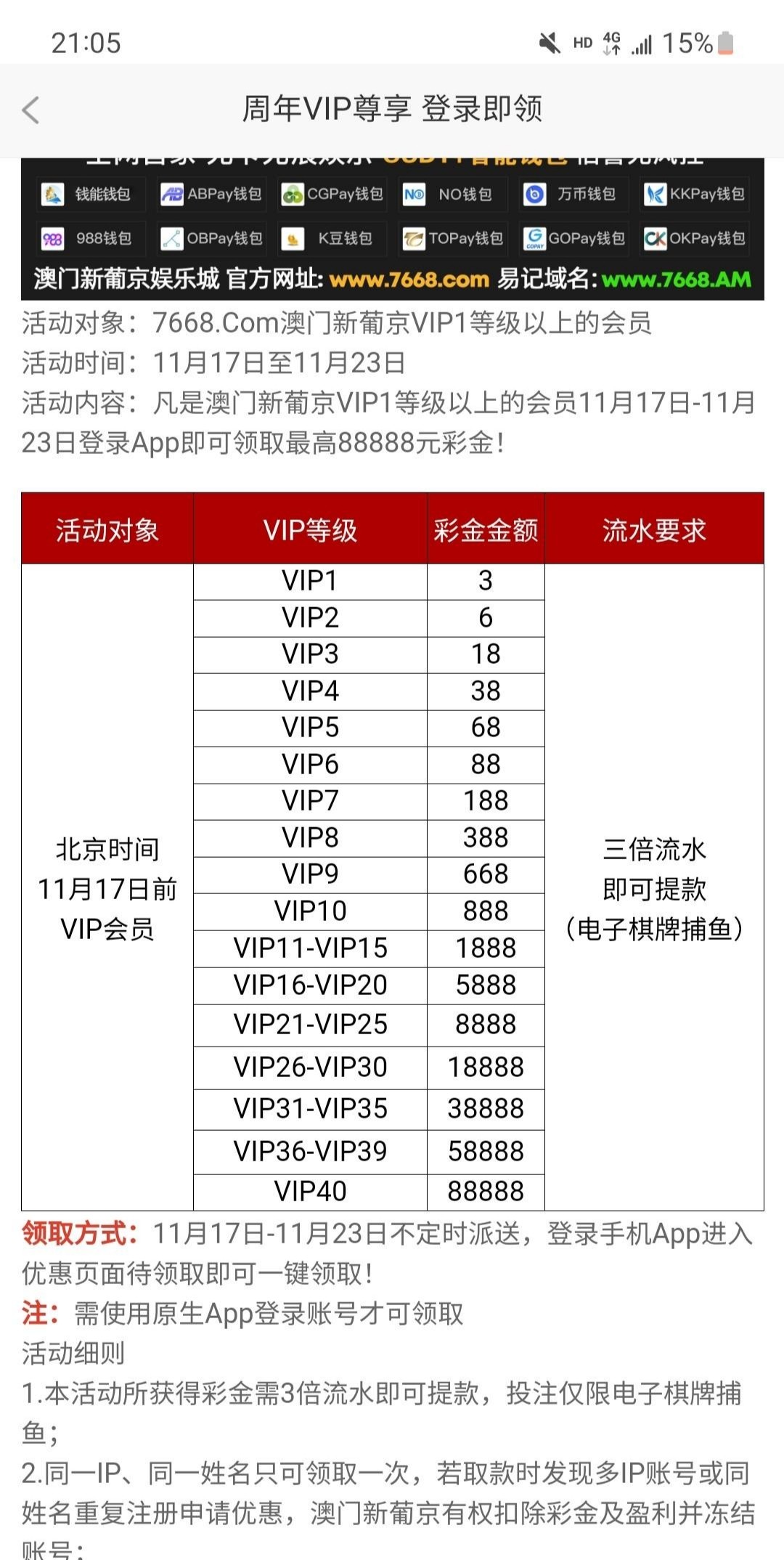 【葡京7668】——vip等级彩金
