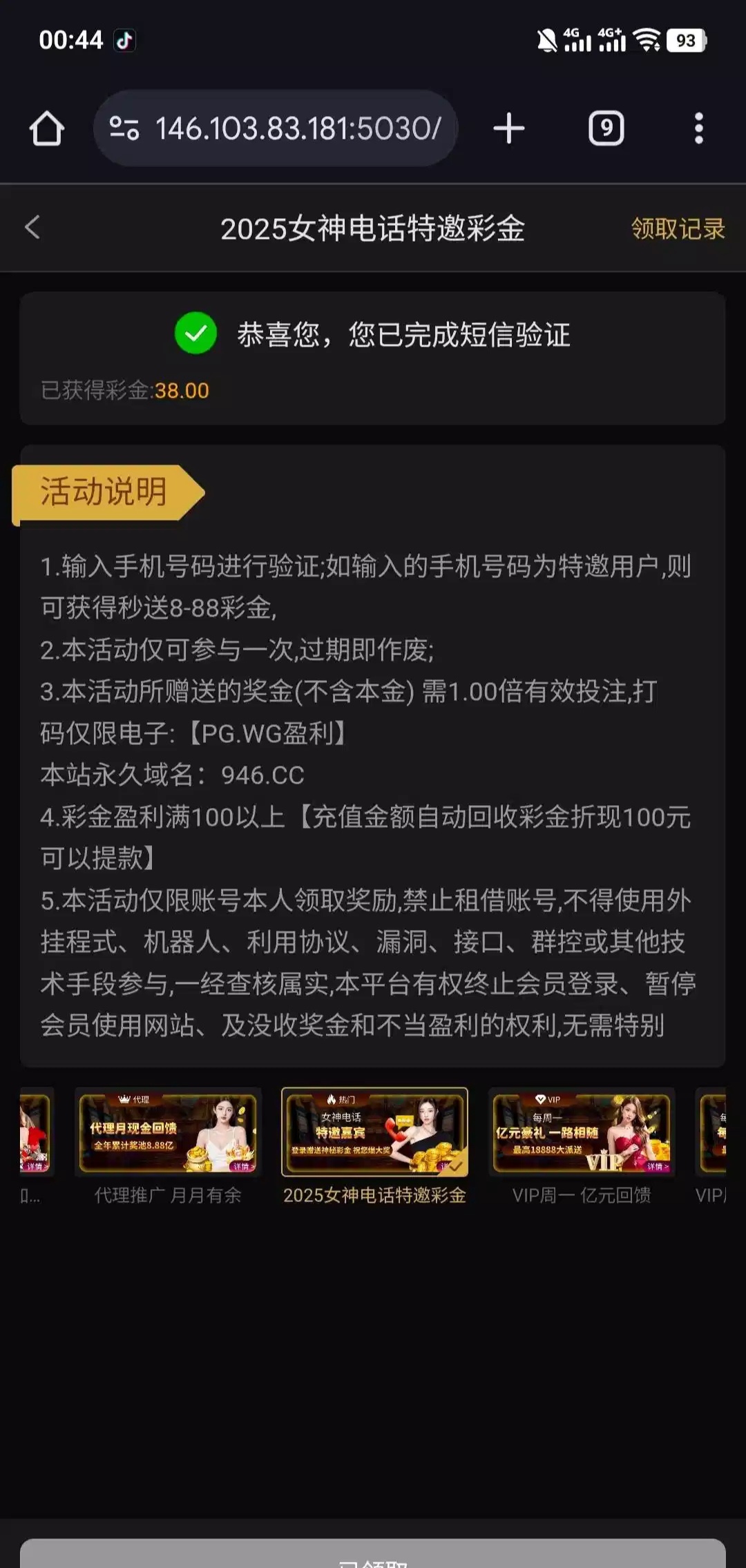 碰瓷短信特邀彩金