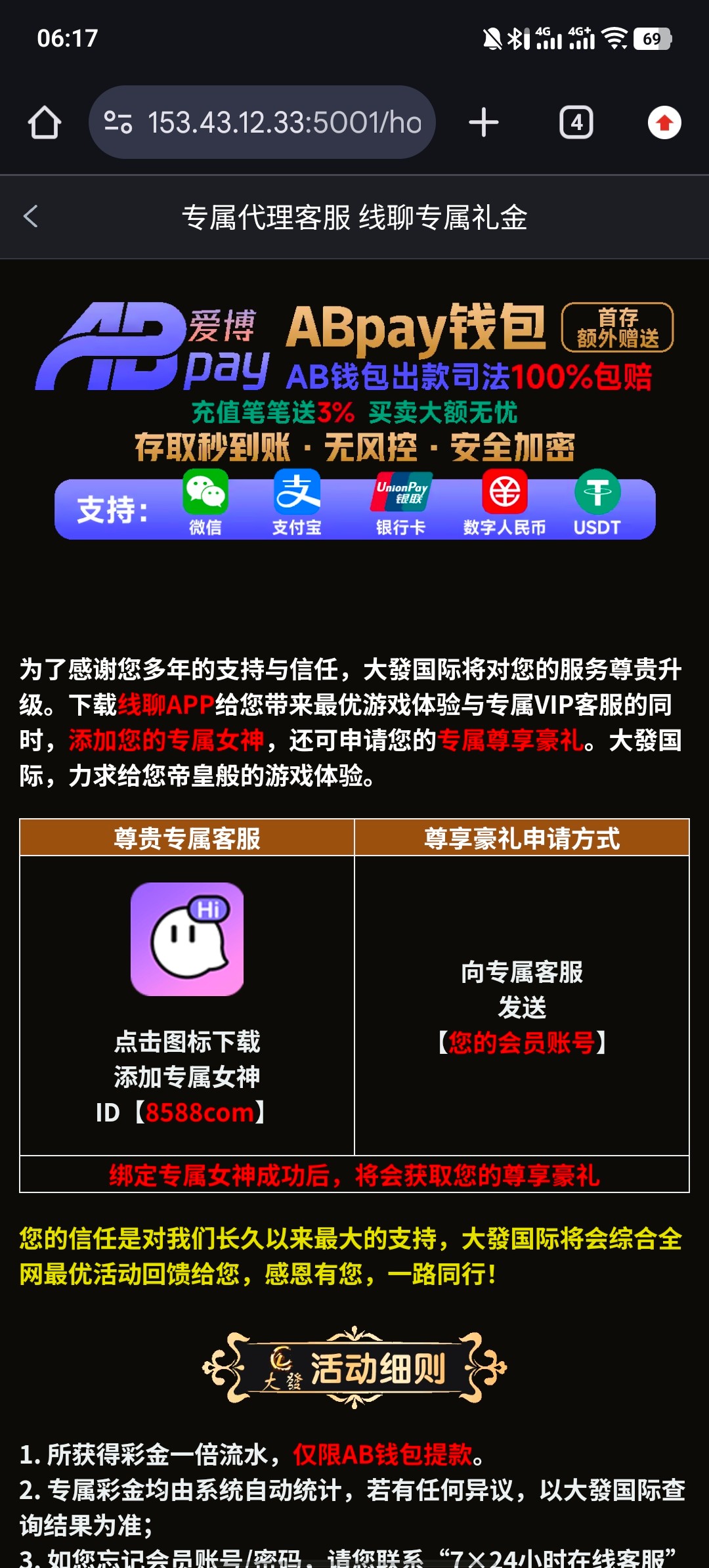 历史充值过100+的 自助添加专员 申请线聊彩金