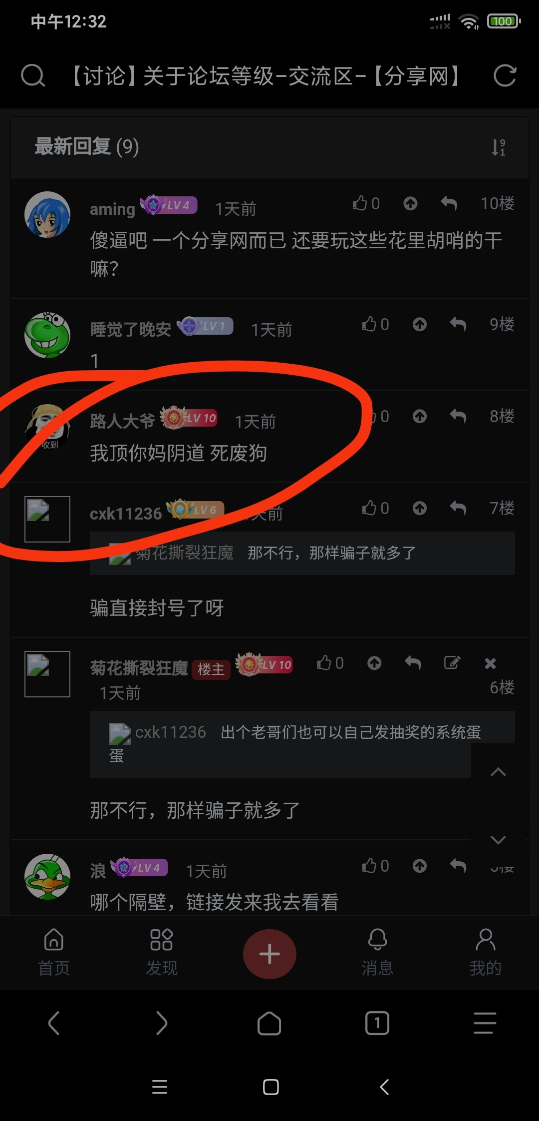 开贴抽20个华子,一个没发,后面又说给猪脚饭,不给然后直接嘴臭骂人。本来逛分享网挺开心的,看到这个人还在跳还在活跃我就很不舒服。这种给人希望又反转是最恶心人的