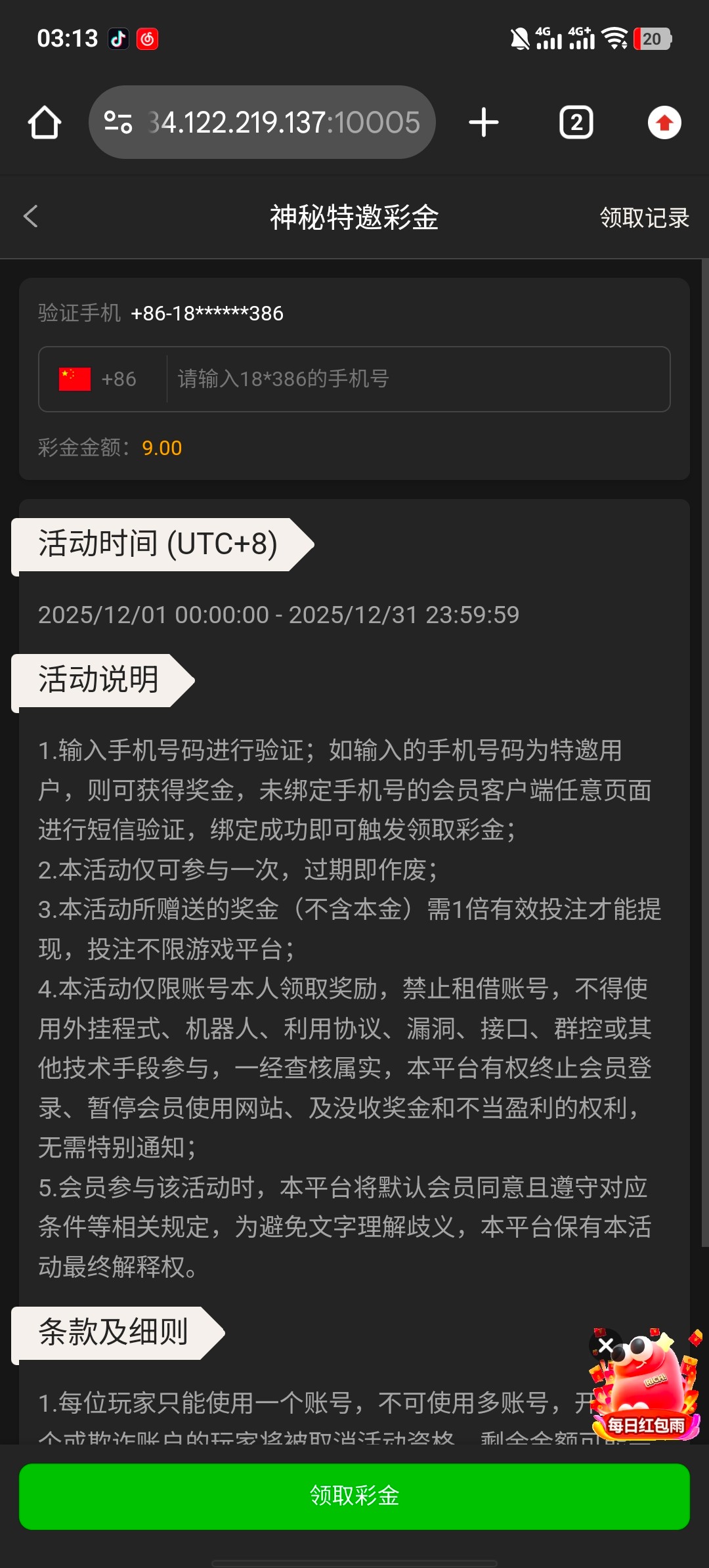 之前领过 短信特邀的 上号看看 有没有重置 我2个号 重置了一个 959.con