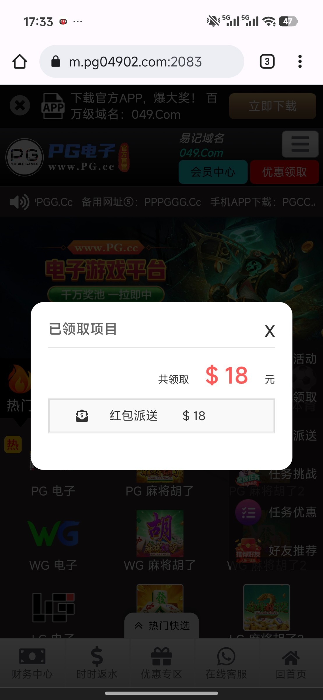 PG电子回访彩金,刚打的电话,有号的兄弟可以登陆看看