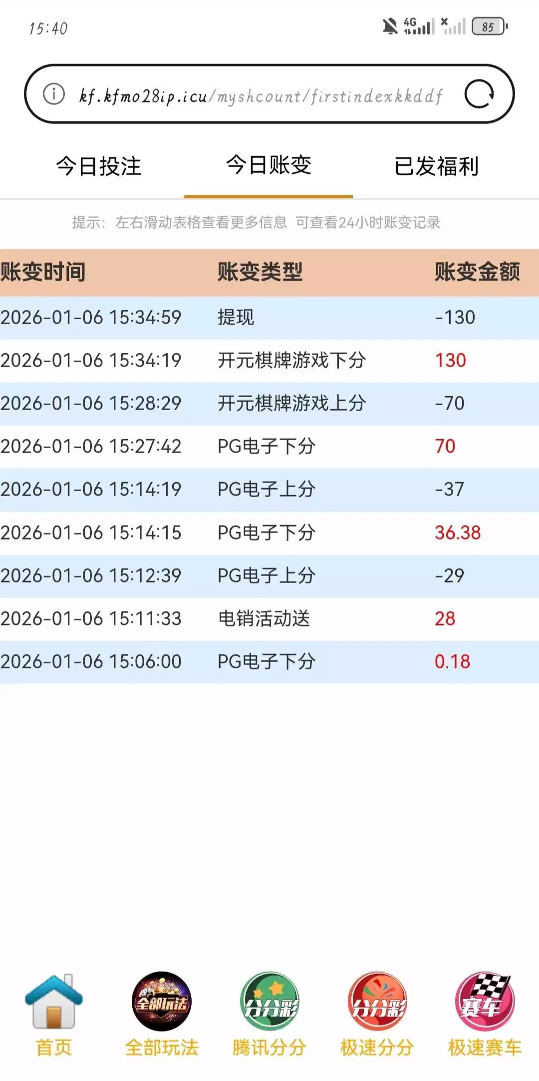 打电话来找在线客服送28彩金 3倍流水不限制游戏 电子没啥水 提款几分钟就到了 这个可以找客服碰一碰 我没接电话隔段时间也能碰到 今天下午新广开也打电话来送了38没打出来