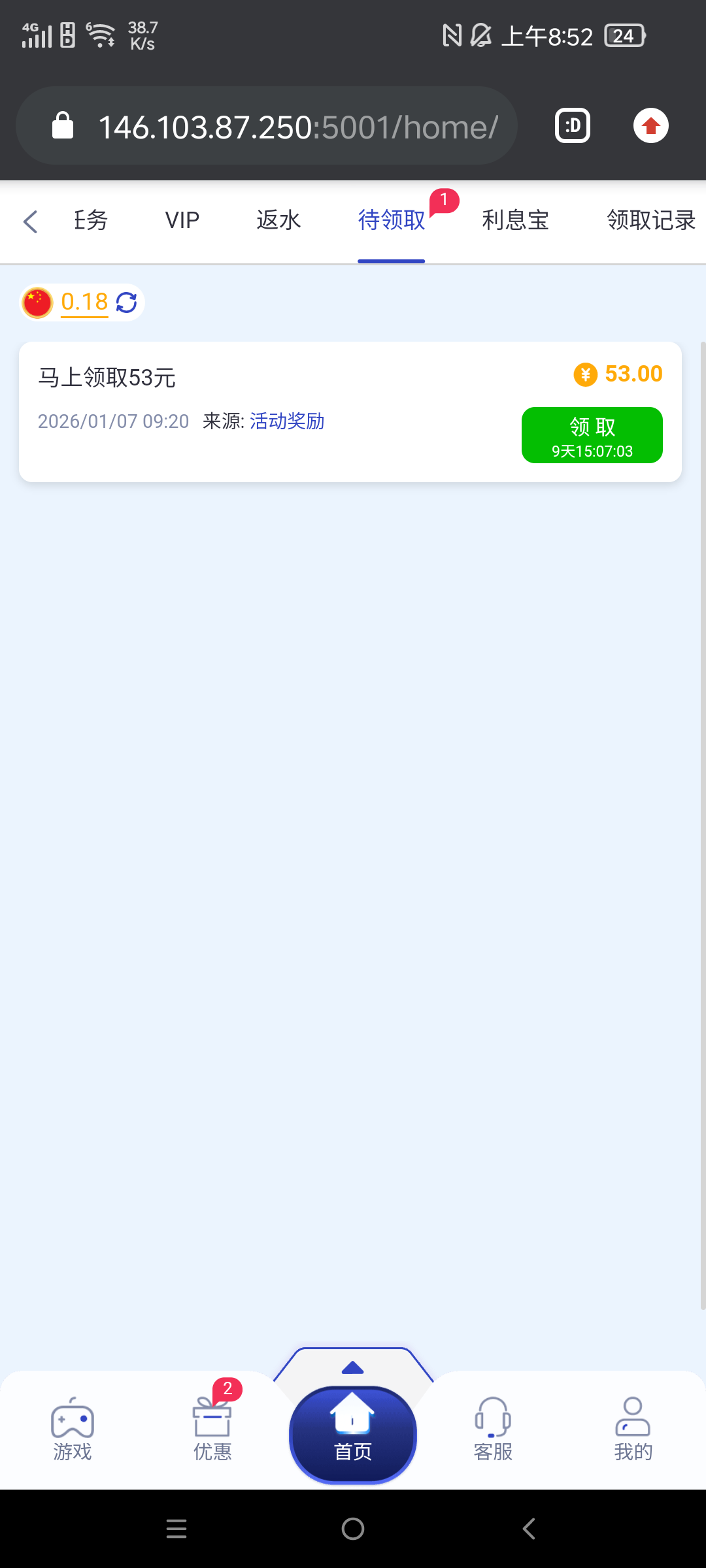 登录优惠自助领取老用户充值的都有