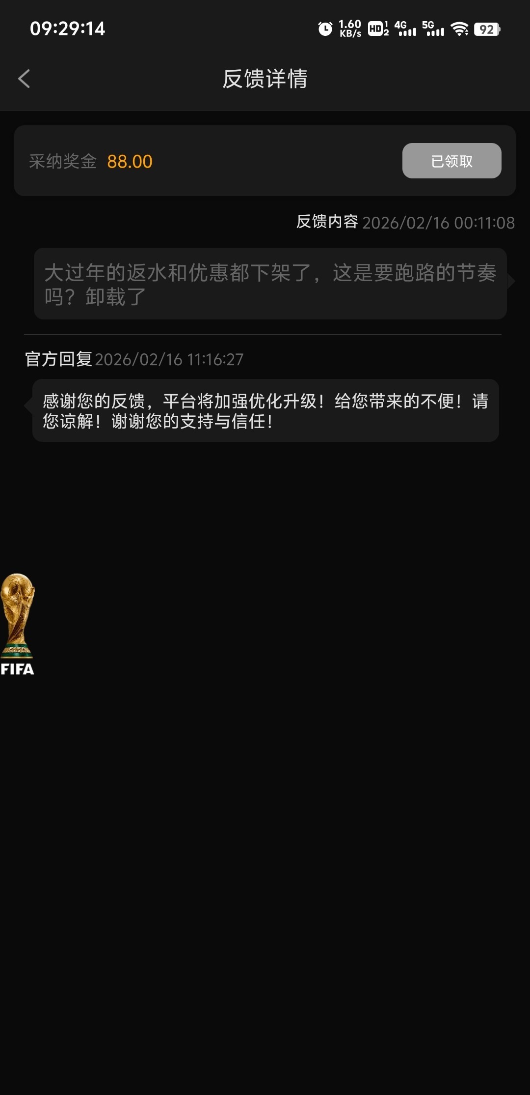 1158这几天活动系统有问题,优惠和返水都没有了,我就去随便反馈了一下,没想到给了88,地址:1158.com