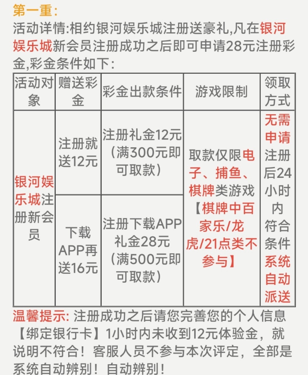 新用户注册绑卡送12下载APP送16一共28具体规则看下图,24小时内自动送没送就是不符合。