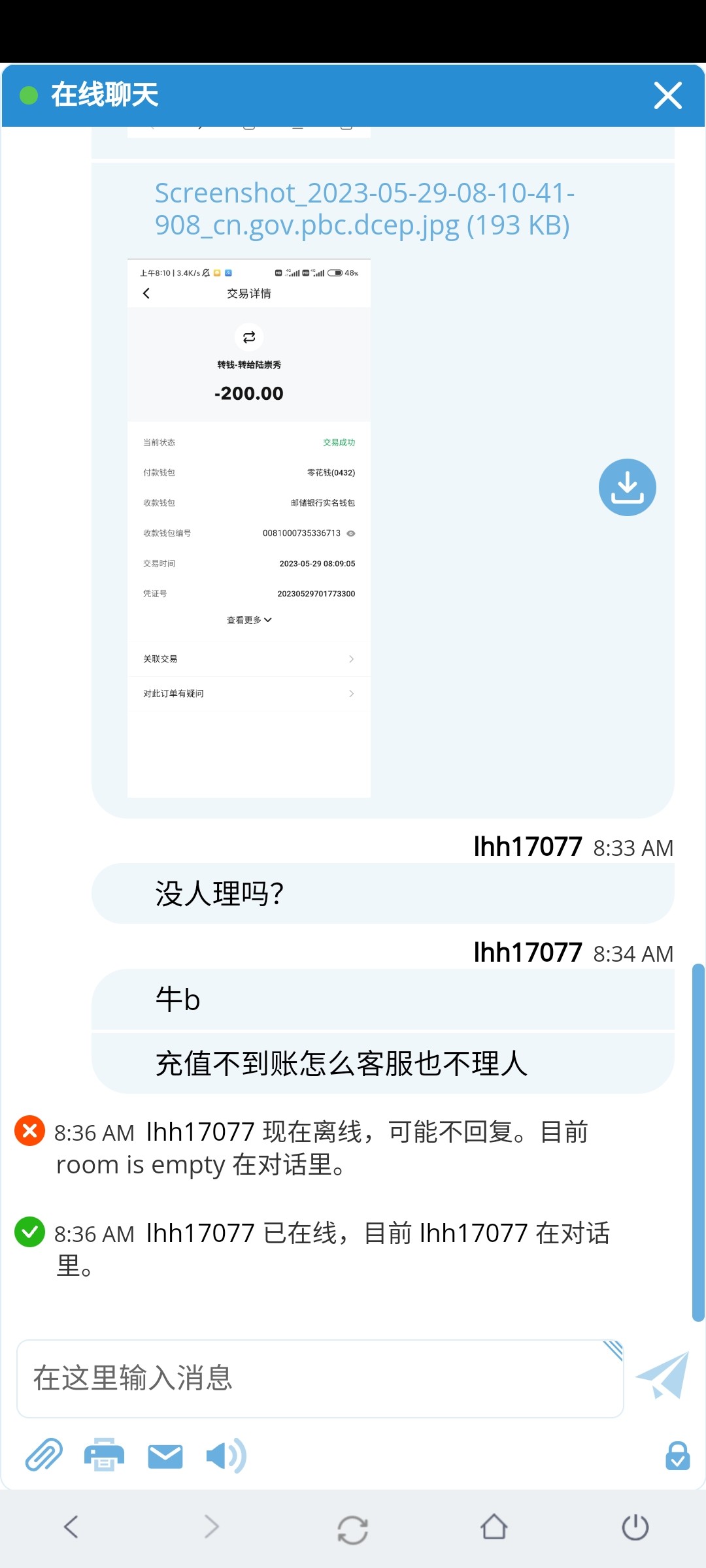 充200客服都不理人也没到账