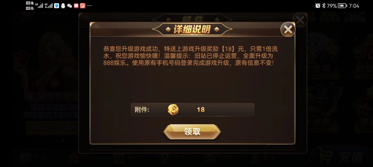 老用户手机号登入邮件领取升级彩金18/100提,密码是自己手机号的后六位,以前发过这个台