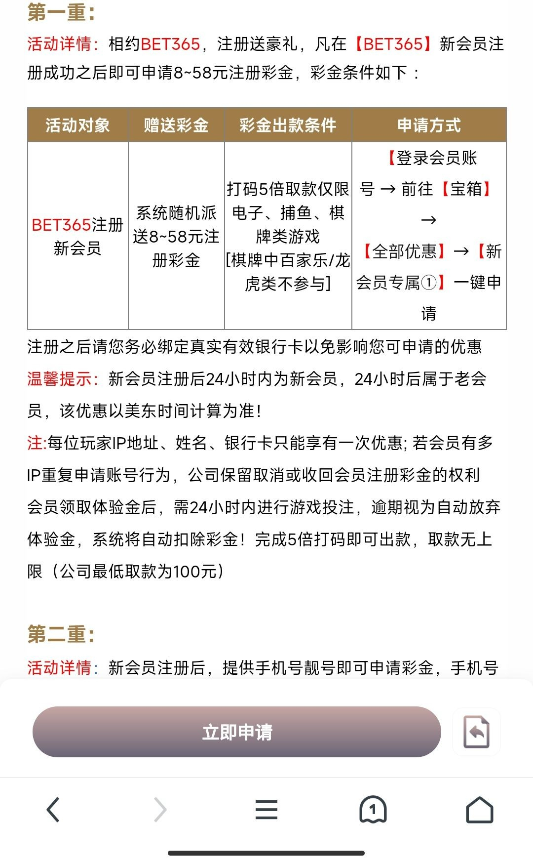 新用户注册绑卡前往宝箱点击新会员专属活动 申请送8/58,有审核时间,限制看下图