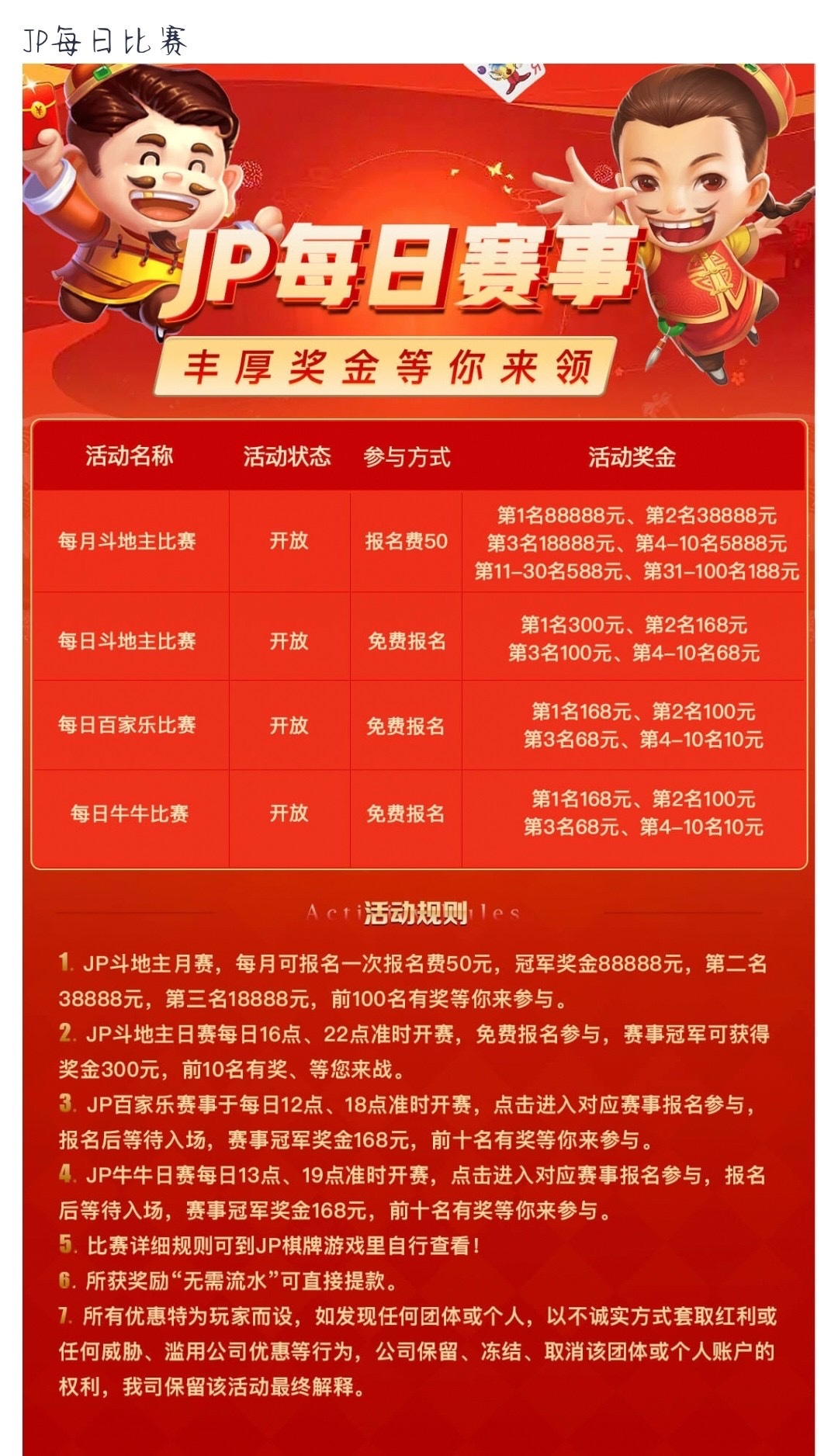 首页jp斗地主比赛下午四点开始 前10名有10-300元奖励 今天名额满了明天再去看看吧