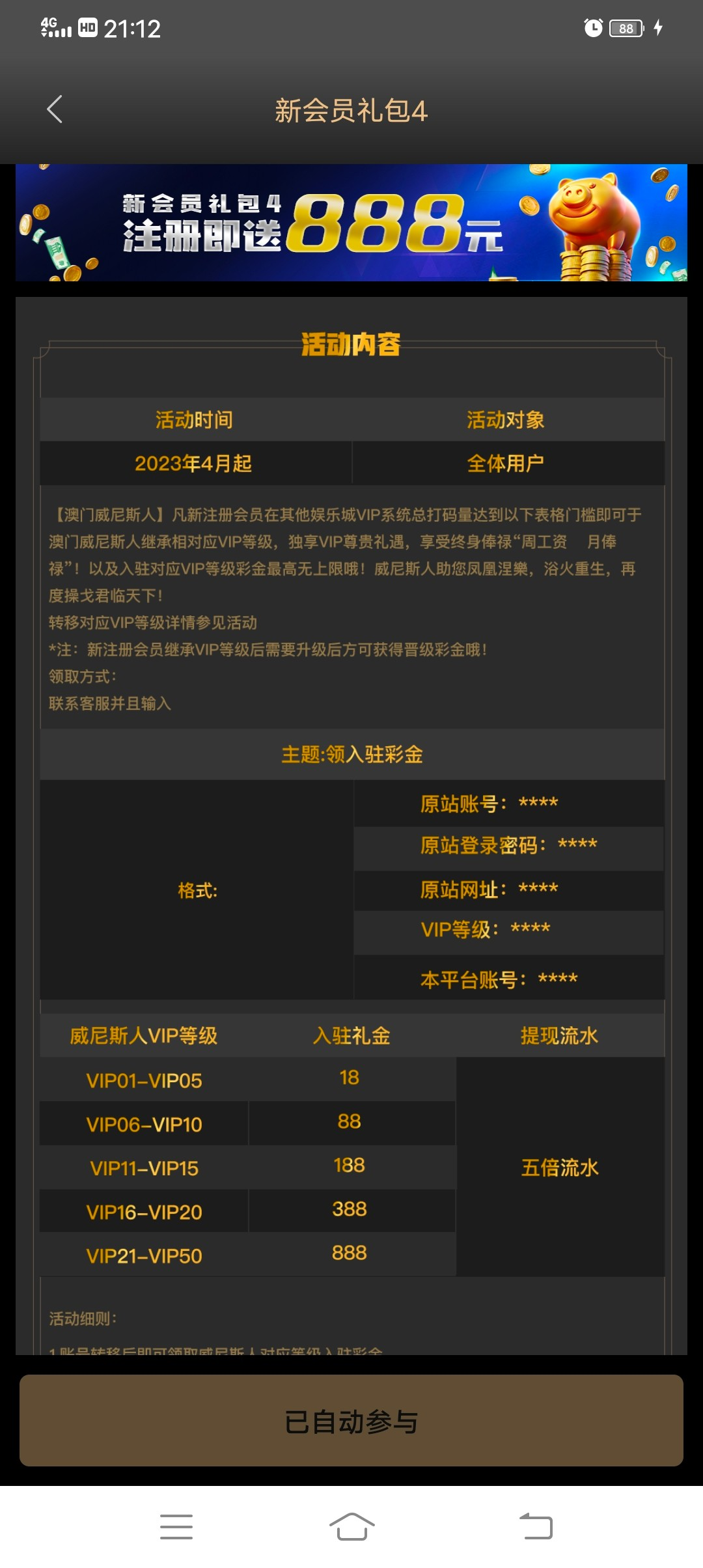 根据在其他平台的等级,申请新会员礼包4