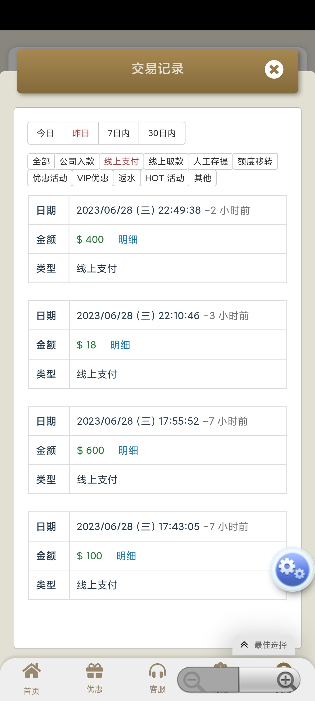 试玩个勾八,看出款图,这个号才玩了两天,名字叫永利,我也不是推台子的,看看就好,随便发几个猪脚饭